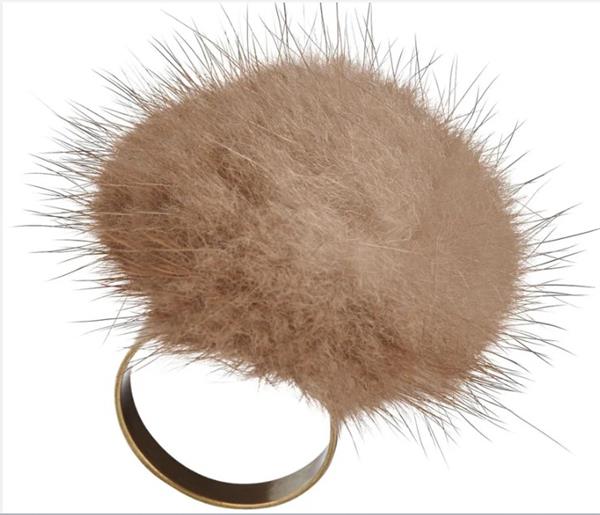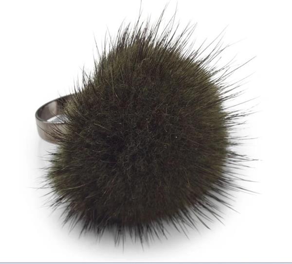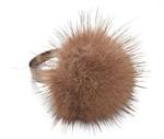 Fingerring med stor pompon af minkpels, ringen er justerbar.