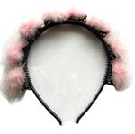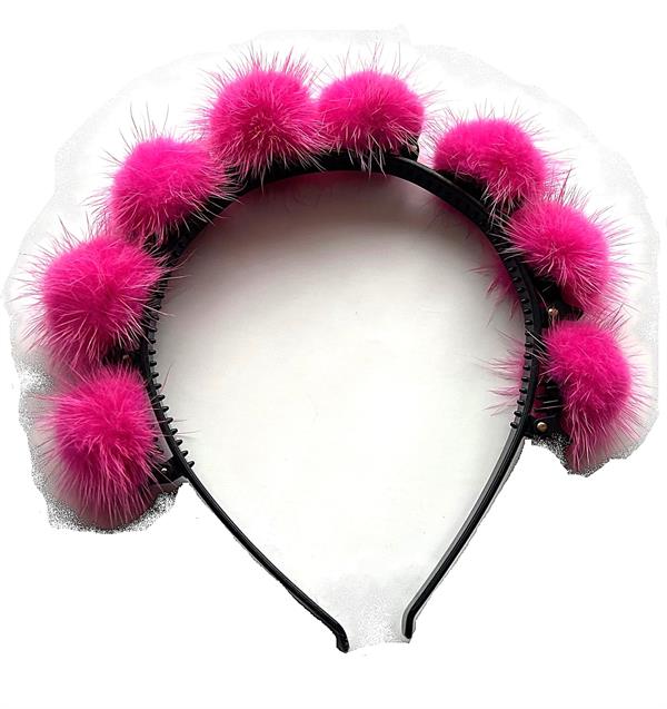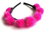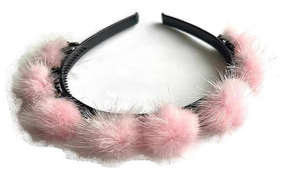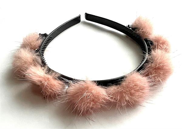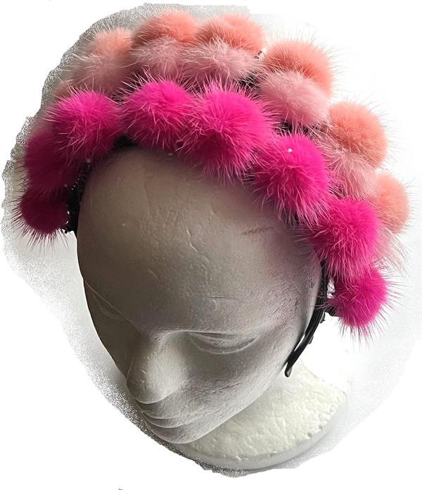 Unikke pelshårbøjler med pomponer i mink, røde farver.