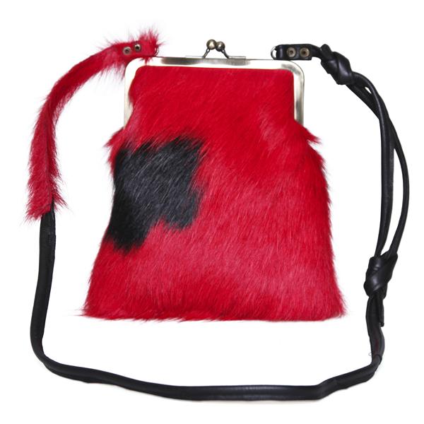Hotsjok design lille rød koskindstaske med bøjle.