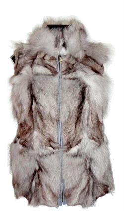 Eksklusiv blå ræve pelsvest (fox leg), med sidelommer og bælte i taljen ( kan tages af), lukkes med lynlås