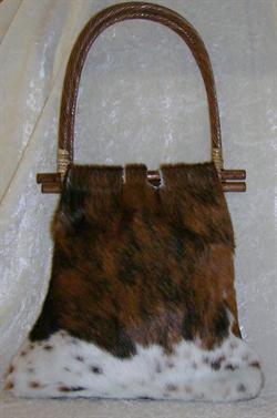 Håndlavet taske i lækkert blødt koskind i hvid/brune nuancer, fungerer både som skulder- og håndtaske.