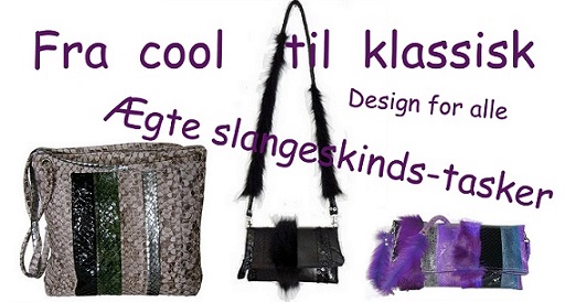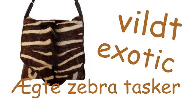 Du finder tasker af koskind med hår i flere farver, slangeskind, zebraskind, springbuk, mm.